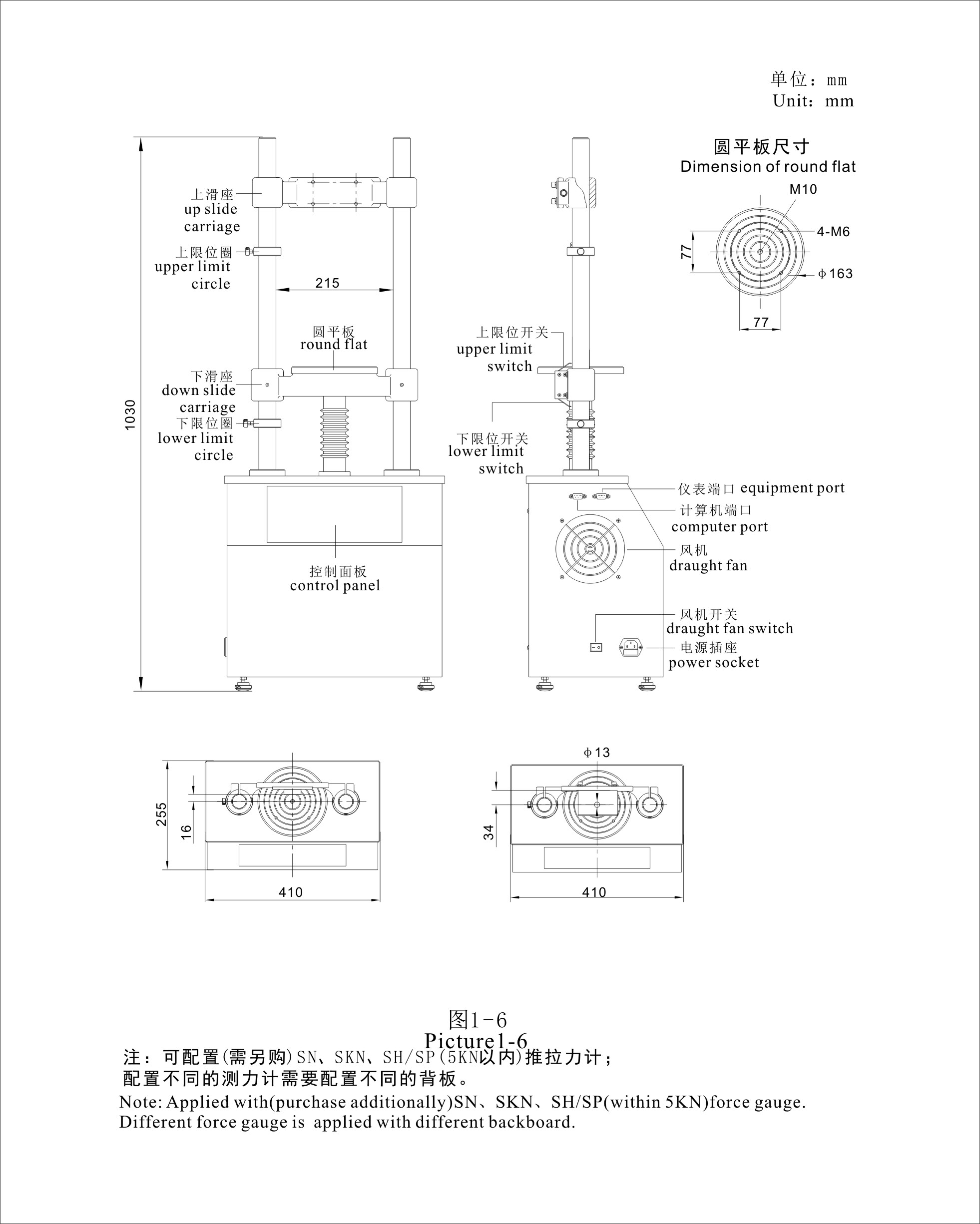可配置(需另购):SHB/SP(2N~5KN)推拉力计,各种推拉测试工装、夹具。