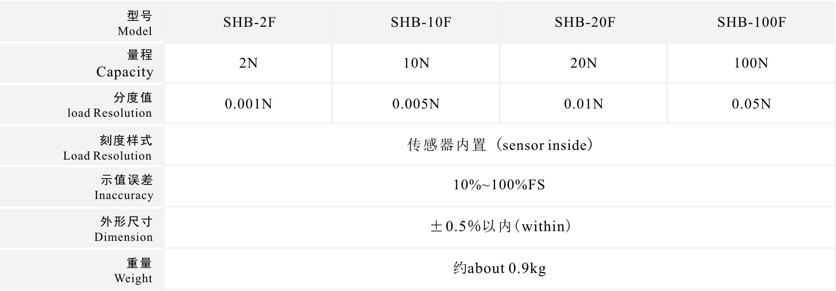 高精度高分辨率,准确度0.5级,最小读数达0.001N; 专用于电脑键盘、按键按钮的按压力测试,并可选配SPF按键专用测试机架,组合成专业的按键按钮试验机; 峰值自动解除功能,抓取测试中的峰值,保持显示1~10秒(可自由设定)后自动解除,等待下一个峰值); 比较功能,上下限偏差值自由设定,红绿指示灯及蜂鸣器自动声光报警设置; 记忆功能,可存储10组测试数据,平均值计算功能; 三种单位变换,可换N、kgf、lbf三种计测单位,并自动换算; LCD液晶屏可翻转显示,按住单位键3秒后放开,可翻转LCD液晶屏显示方向; 自动关机功能, |